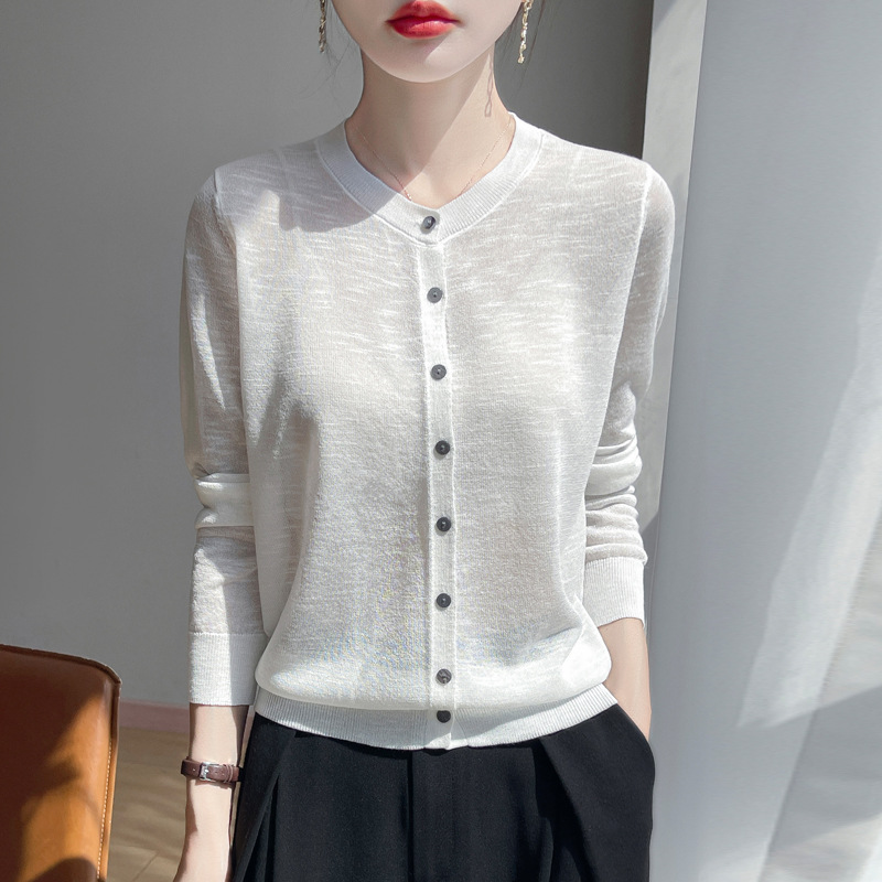 竹麻ラウンドネックニットカーディガンレディース薄手ジャケット日焼け止めシャツ25夏新作シンプル無地空調シャツトップ
