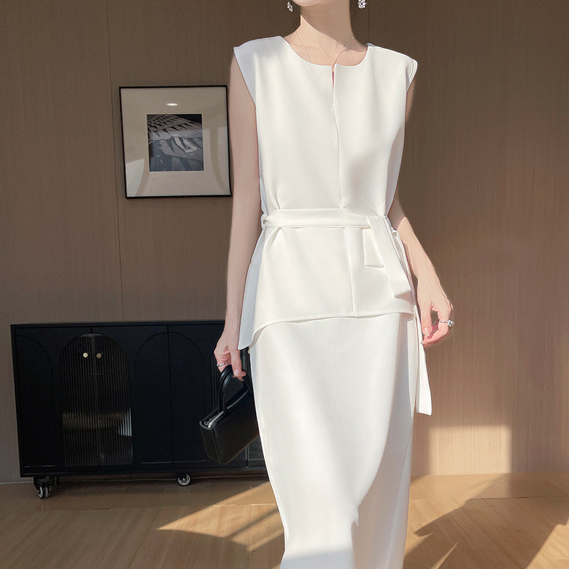 2025 高品質フレンチアセテートベストスーツ女性の夏の新しいラウンドネック気質スリムノースリーブ 2 点セット