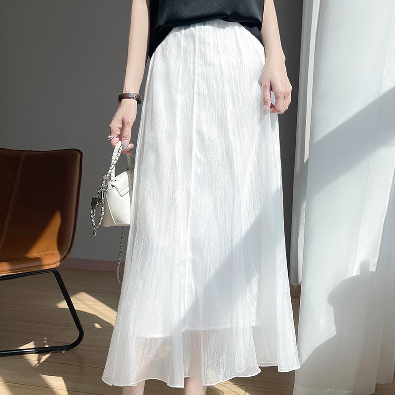 025 新しい夏のパール糸スカート女性の無地薄い軽くてエレガントなプリーツスカートメッシュロングスカート