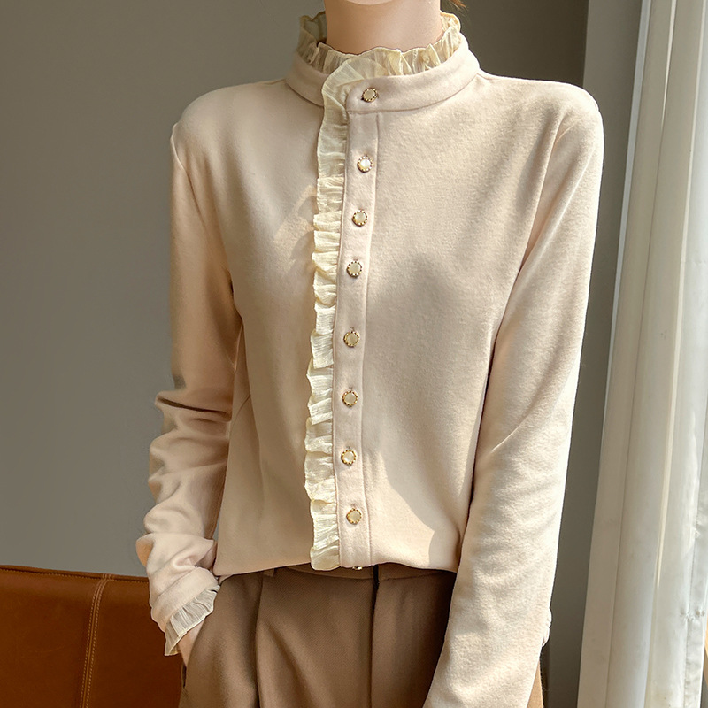 両面の毛を磨いて襟の木の耳元の小さい香の風の絨毛の徳の底のシャツのカーディガンの中でシャツの女性のレースを掛けてシャツを厚くします。