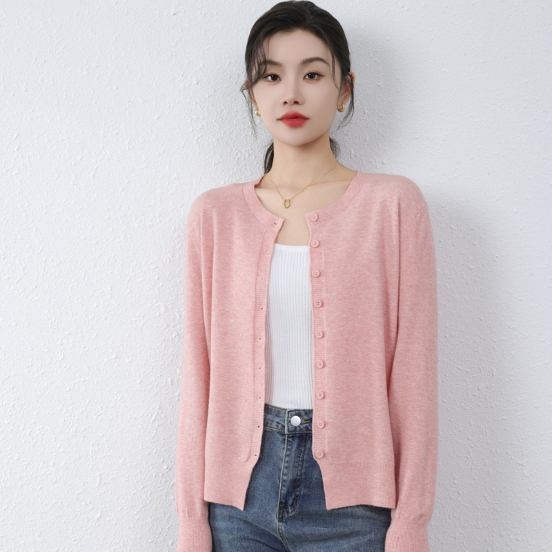 秋の新商品の丸首の優しい風の長袖のニットのカーディガンの女性の韓系の小さい清新なニットのコートのセーターの女性