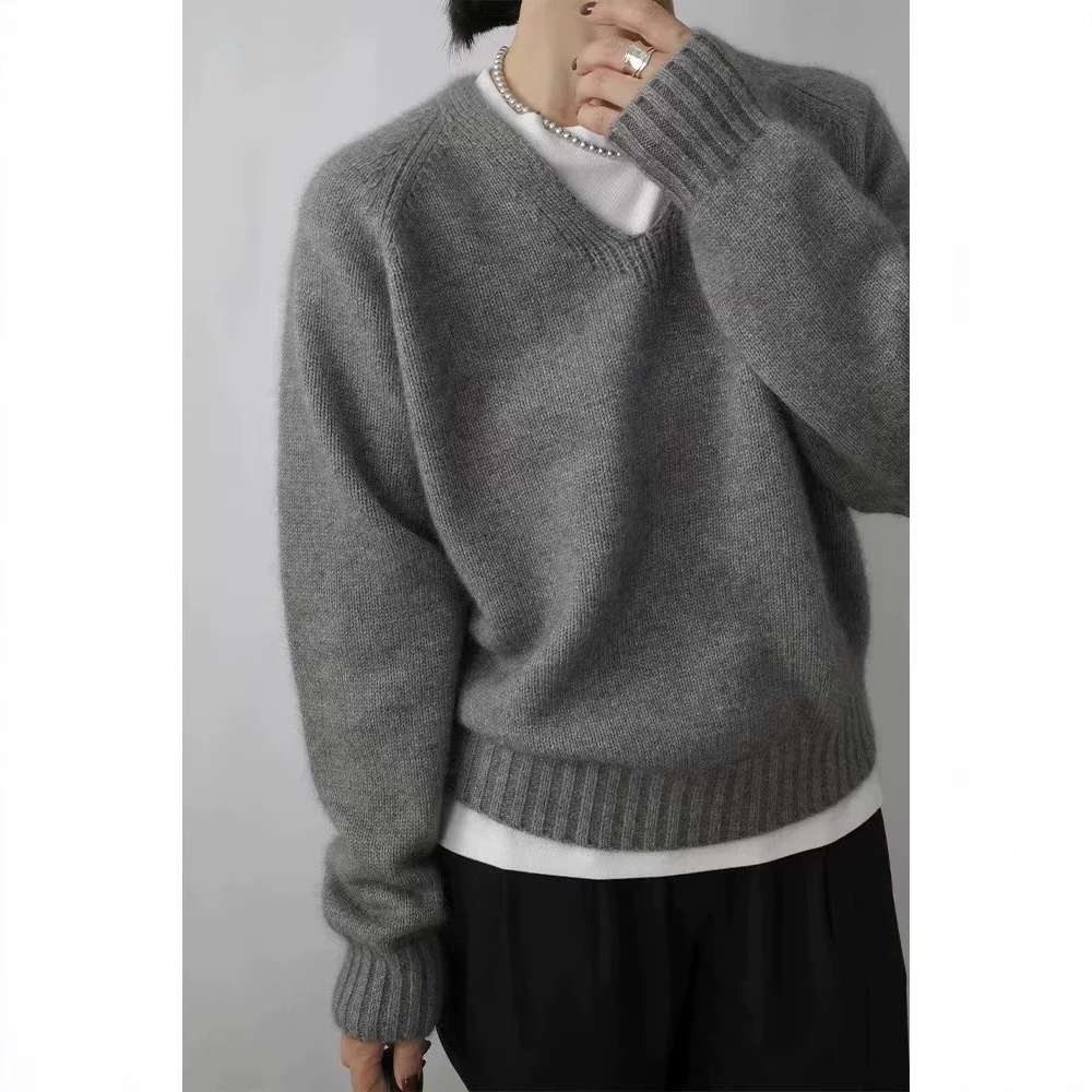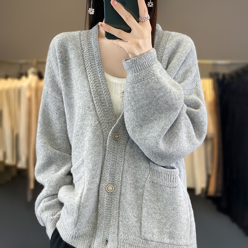 メーカー代発春秋新純色ウールニットセーターvネックカーディガンコートがゆったりしていて痩せているセーター