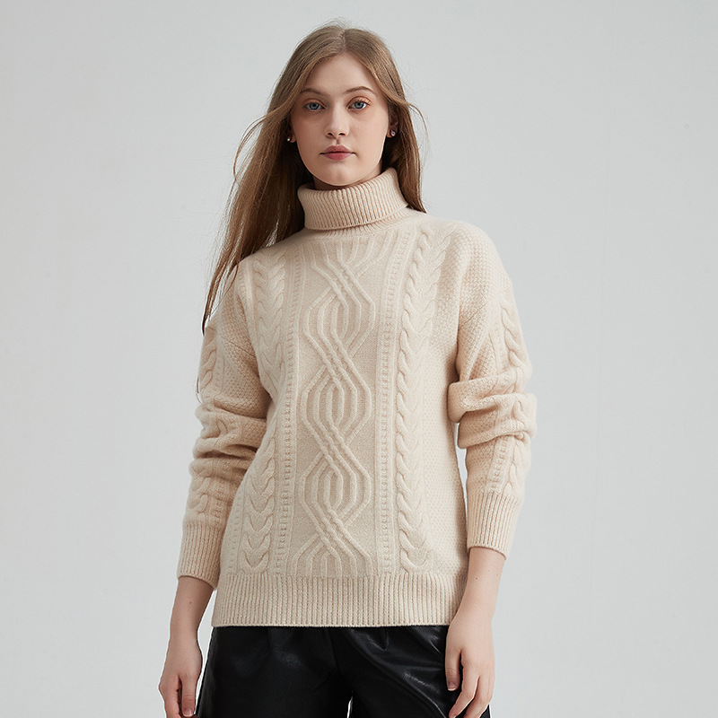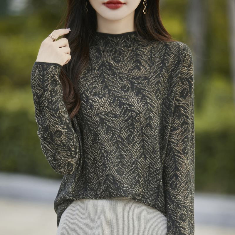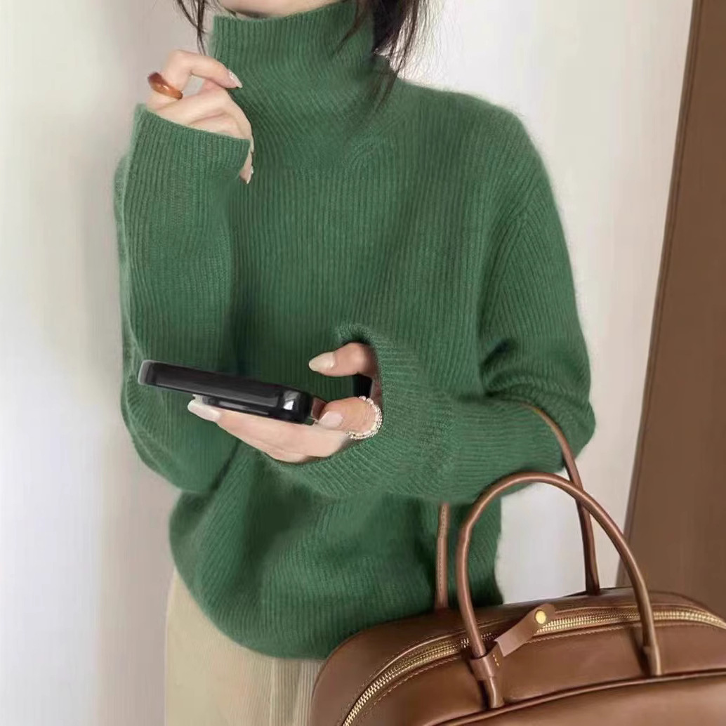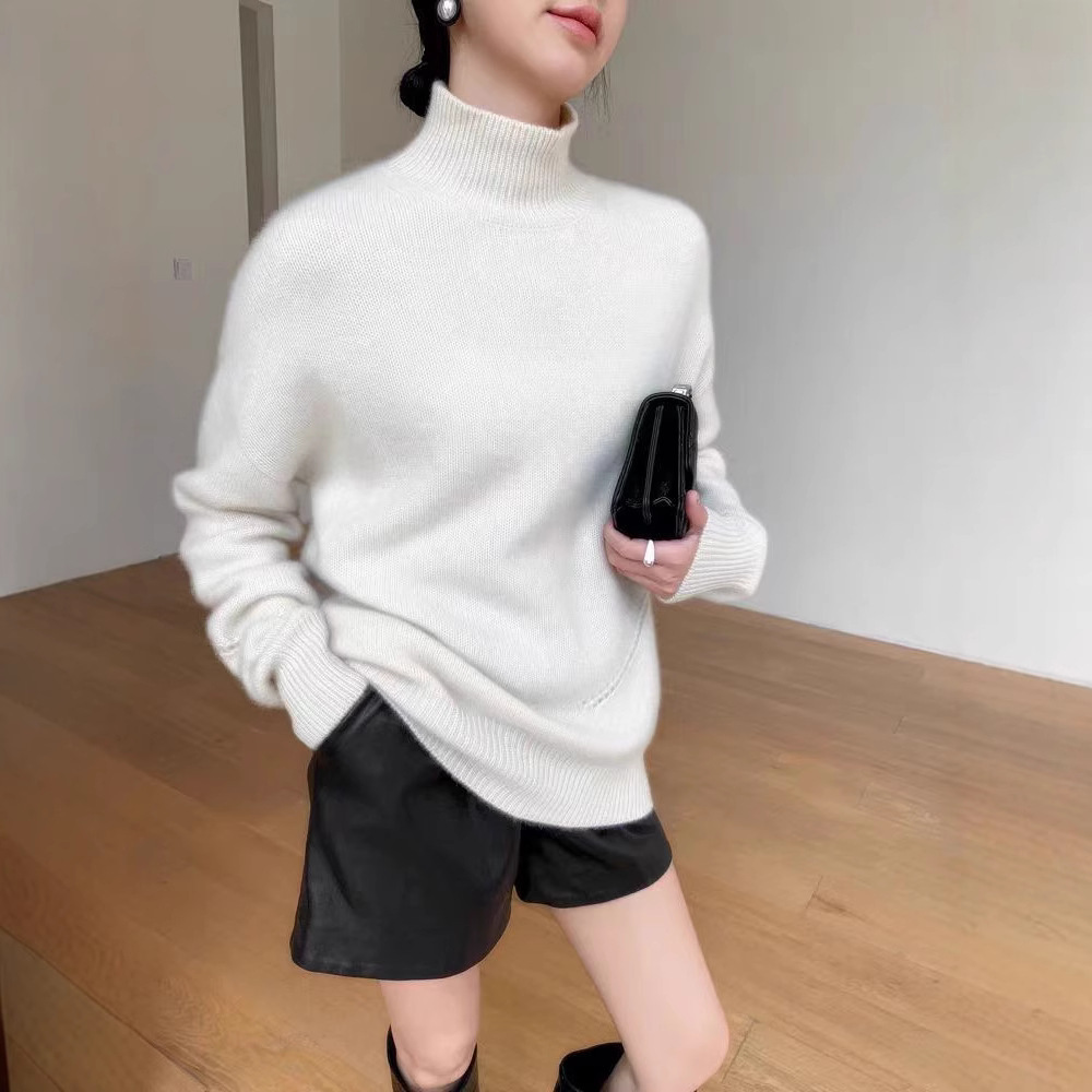 24秋冬の高襟のニットの女性の山の襟のプルオーバーのセーター