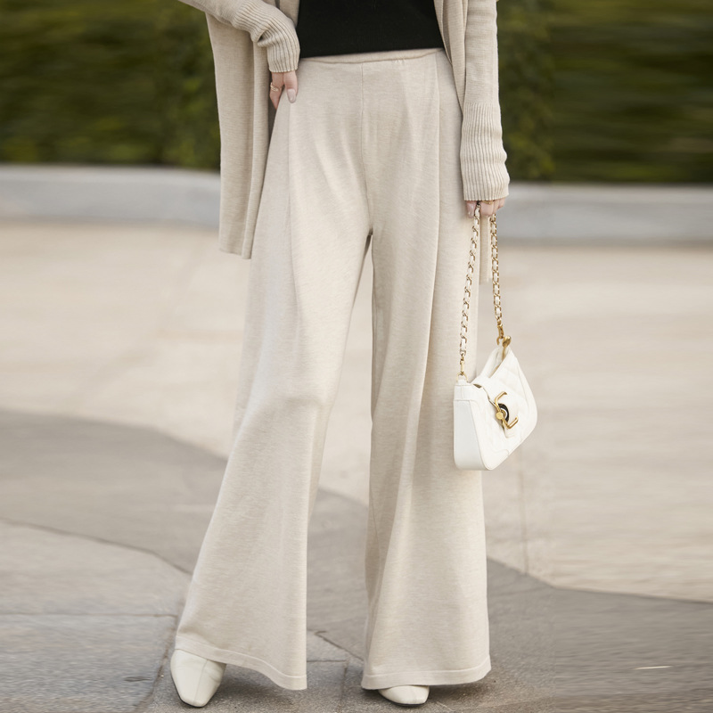 24秋冬新作ニットワイドパンツウールゆったりカジュアルハイウエストストレッチ垂れ下がっ感ゆったりシワ引き地レディースパンツ