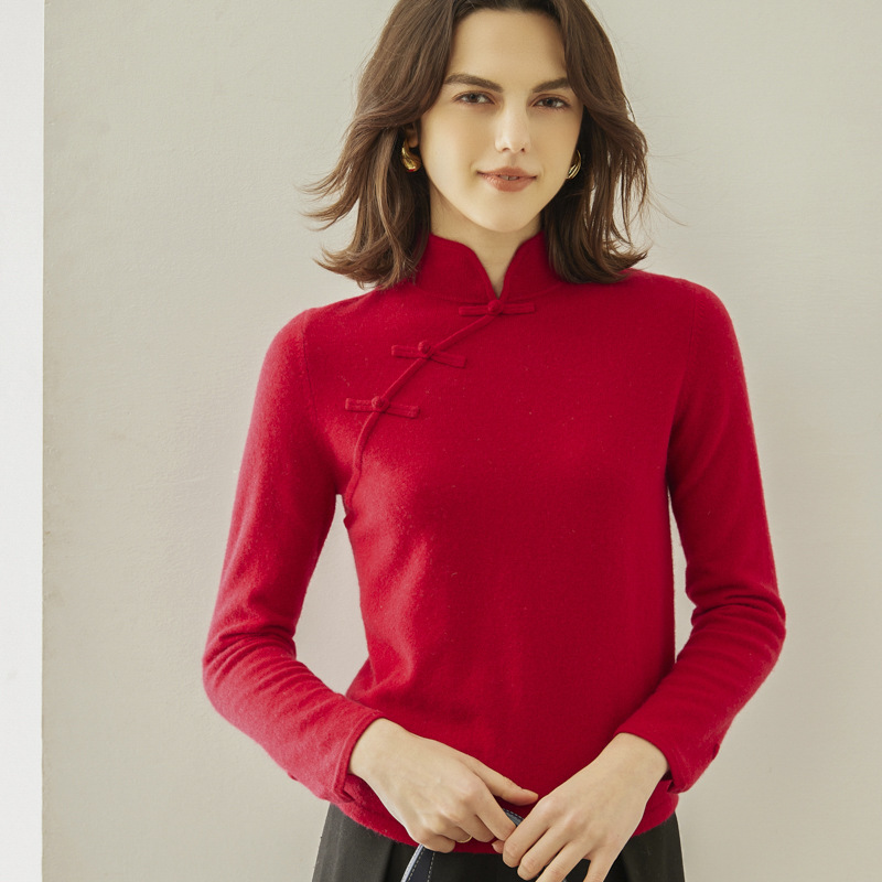 中国風盤ボタンカシミヤシャツ2024秋冬新作女性立襟カーディガンがゆったりとしていて、着痩せしています。