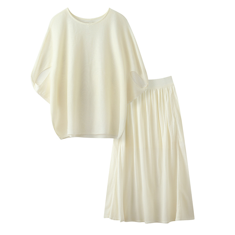 2025 夏テンセルリネンミッドスリーブニット Tシャツバットスリーブレイジースタイル痩身夏の新しい半袖スカート