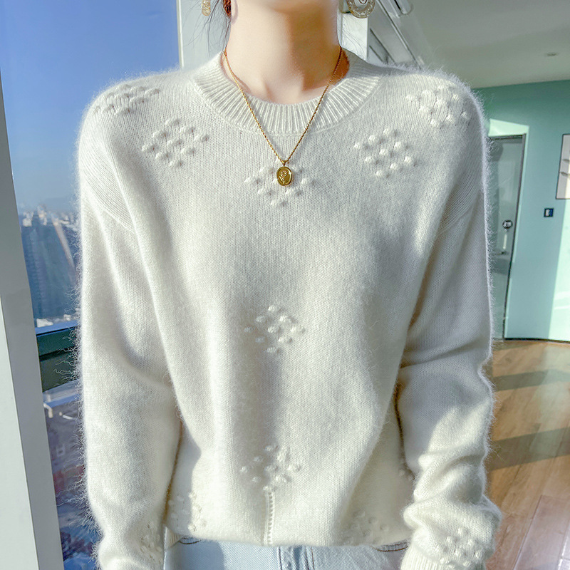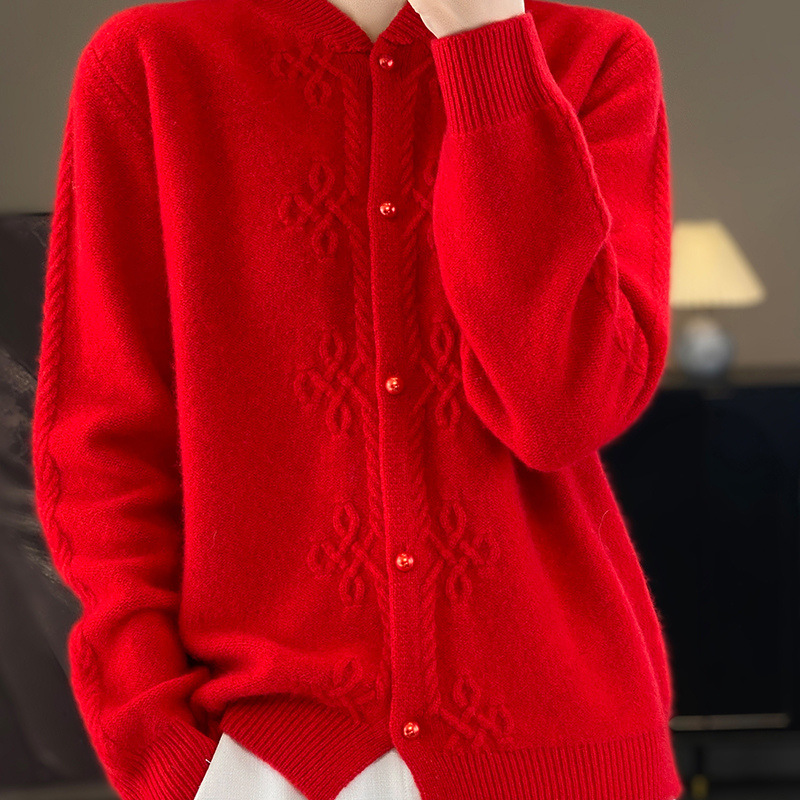 2024年春秋新作丸襟ウールカーディガン上着レディース厚手ジャカードウールニットカーディガン