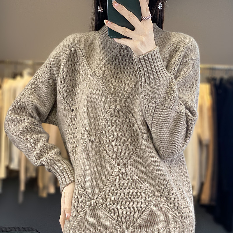 ヨーロッパ駅の新型の重工豆のウールのシャツの女性の丸首のダイヤモンドの透かし彫りのゆったりしている怠惰な風は厚いセーターを編みます。