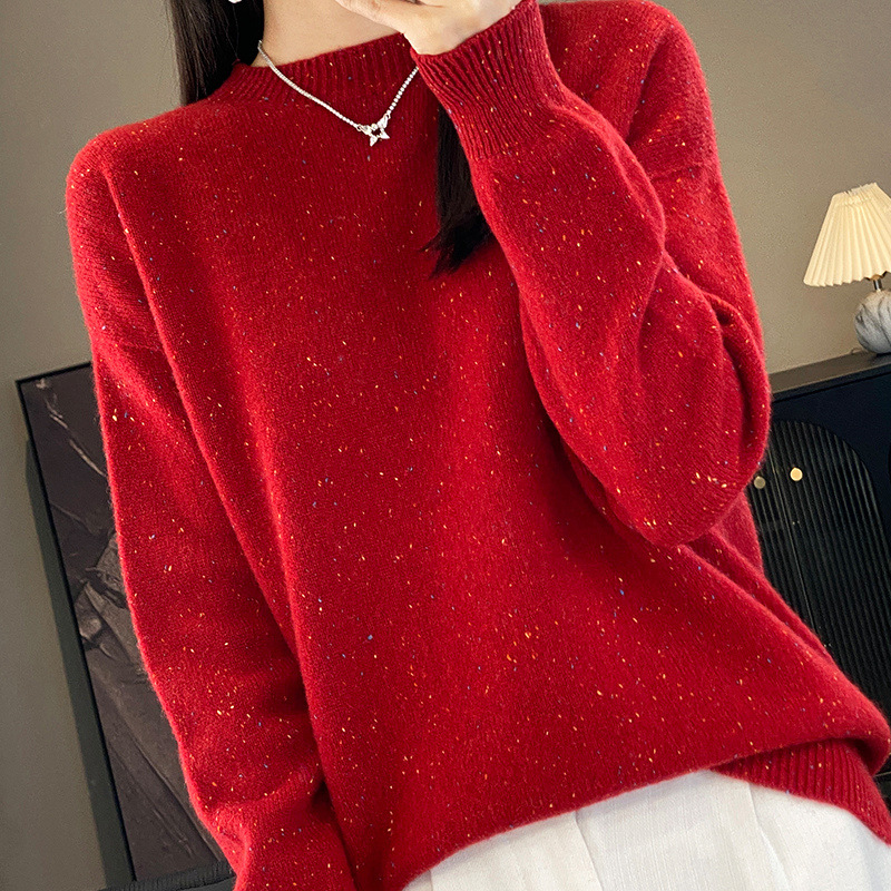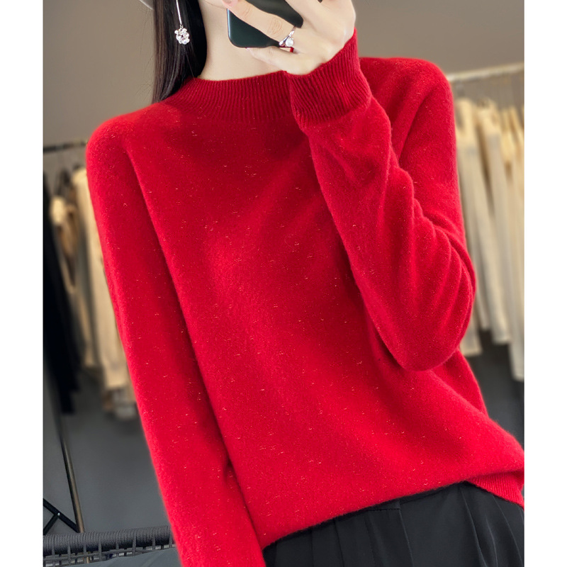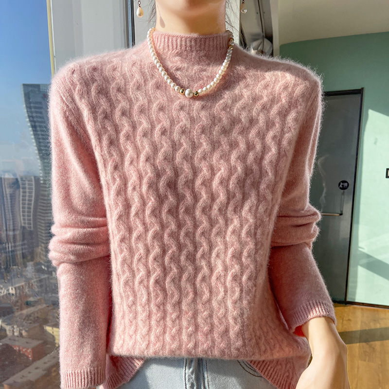 24新型の豆の糸の一線は衣服のウールのセーターの女性の半高の襟の頭のシームレスなニットのセーターになってセーターを打ちます。