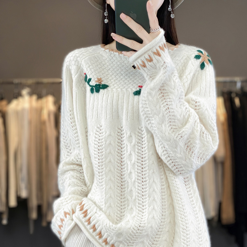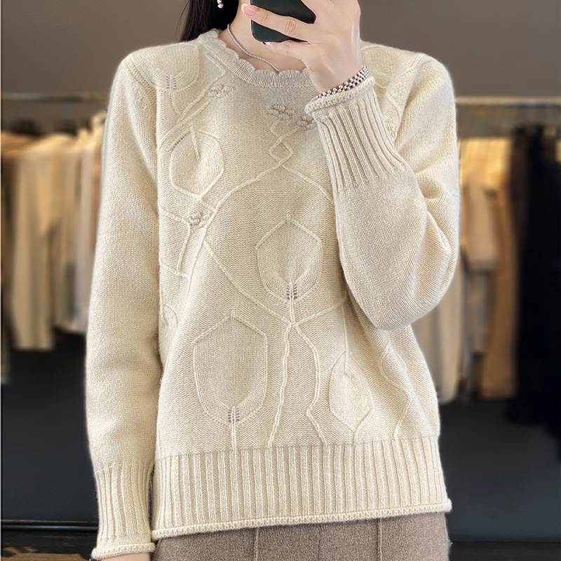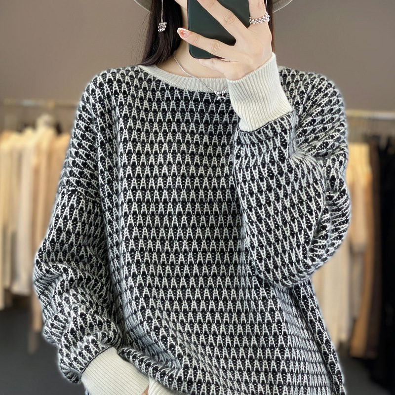 レース丸襟セーター2023秋冬新作女性ジャカードシャツ優しい風がゆるくて痩せやすいセーター