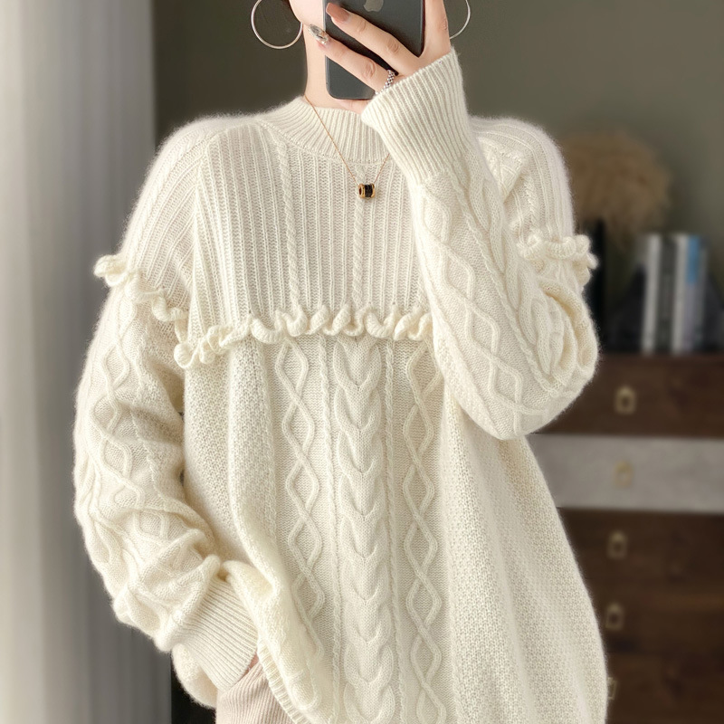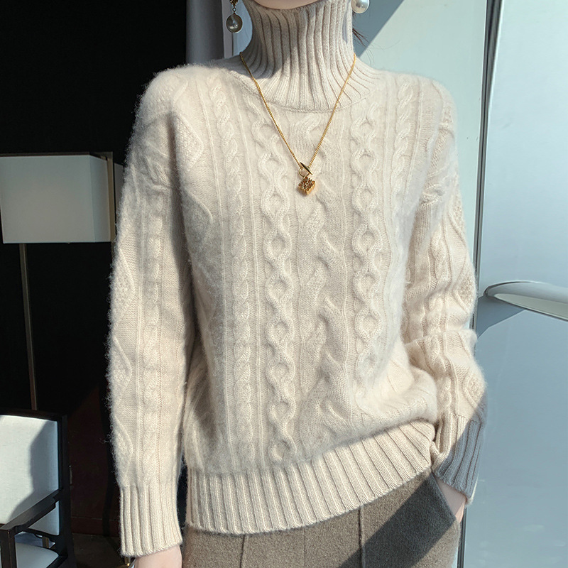 半高襟カーディガン2023秋冬新作レディース厚手の麻花のボトムシャツ優しい風がゆったりしていて痩せています。