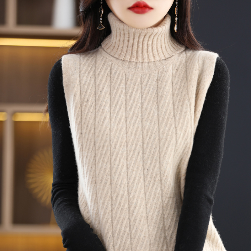 ベストの女性は秋冬の新作の高襟を着て、袖なしの上着を厚くして、ゆったりとしていて、痩せているセーターのカーディガンを着ています。
