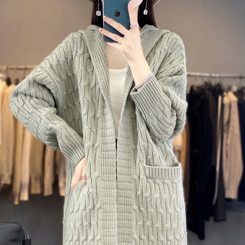 秋冬の新型の怠惰な風のレトロな厚いニットのカーディガンの女性の気質の長いタイプの外はジャカードのウールのカーディガンのコートを着ます。