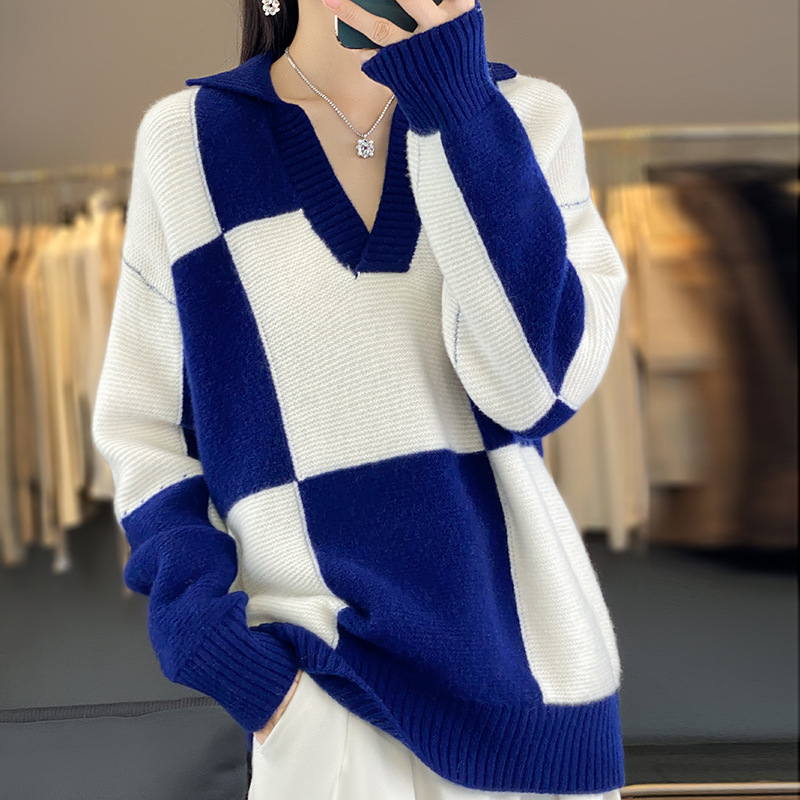 色合わせvネックセーター2023秋冬新作女性カーディガン優しい風がゆるくて痩せやすいセーター