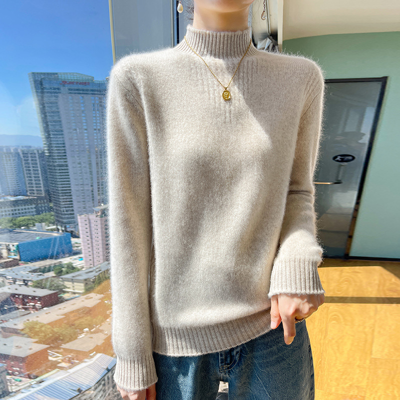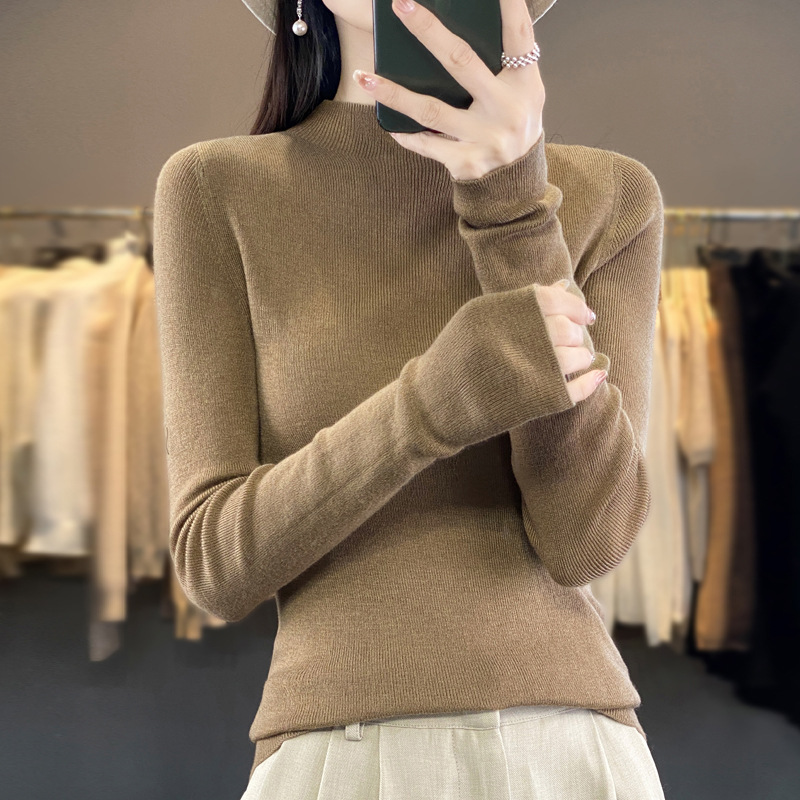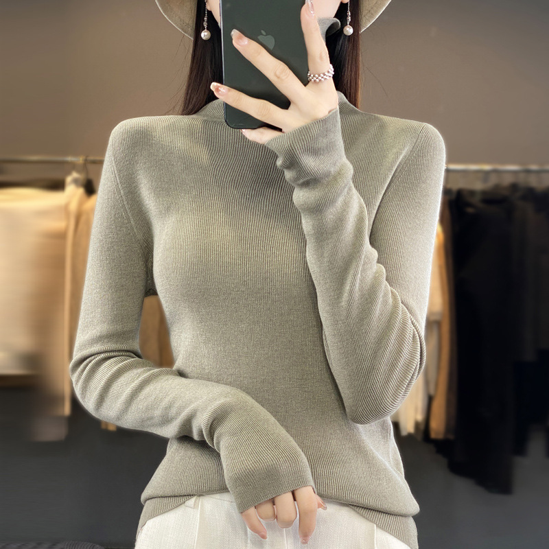 秋冬の新型高襟四平修身セーターの女性プルオーバーニットの細いウールの中に長袖の底のシャツを掛けます。
