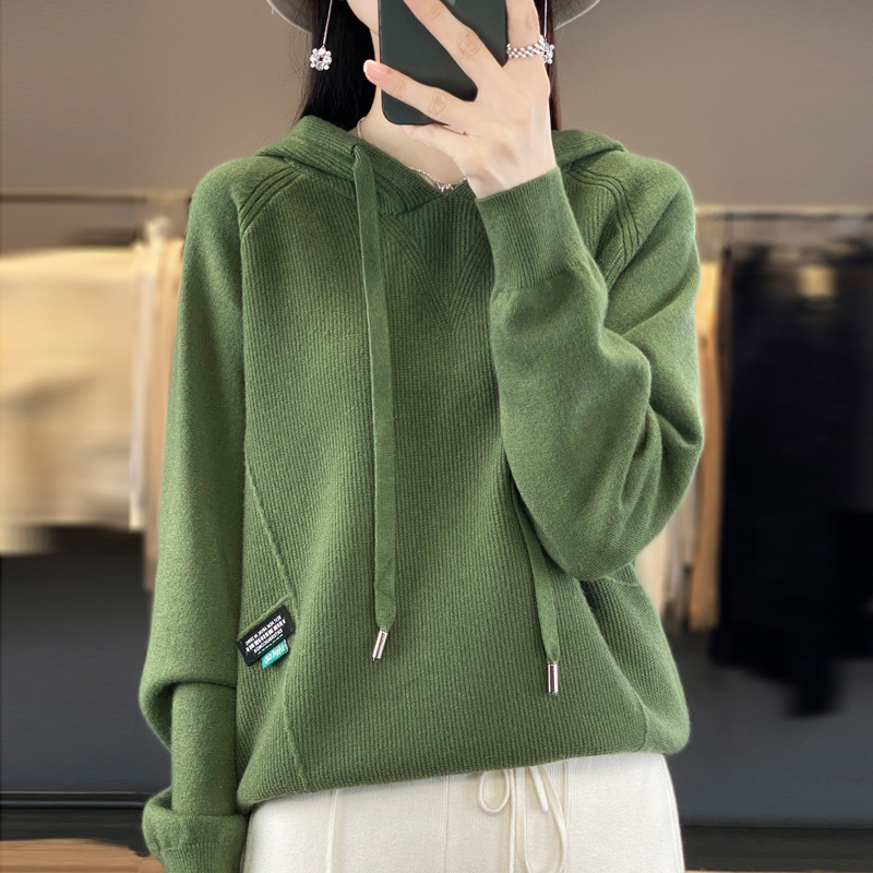 新品2023秋風気質アンディパイルプルオーバー厚手フード付きゆったり型セーターレディースニット