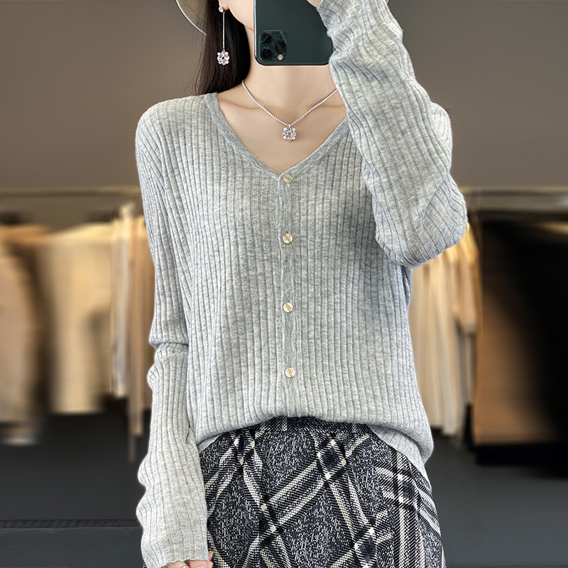 ウールのカーディガンの女性の秋の新型vネックの坑条は身を修めて痩せています。