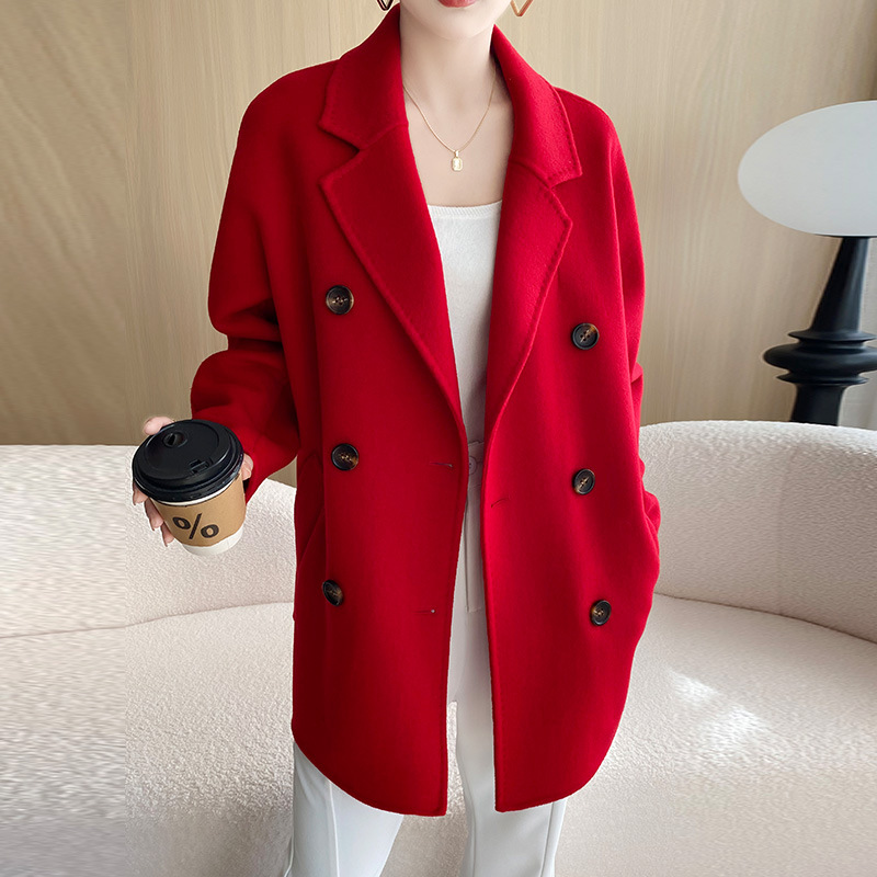 新型のゆったりしたシルエット版の両面はウールコートの女性の冬の小さい背の気質の中の長い毛のコートです。