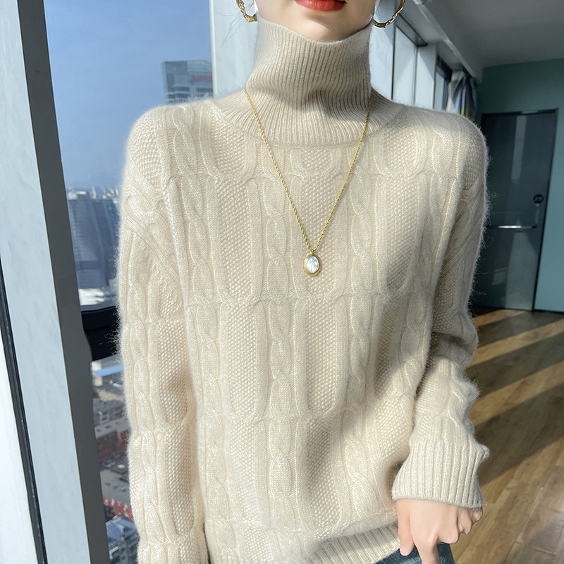 カシミヤ2023の怠惰な風が女性の秋冬の新しい高襟ジャカードのゆるいセーターのウールのニットウェアを厚くする