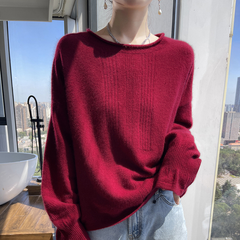カシミヤ2023ファッション洋気丸襟巻き灯籠袖女性ゆるいセーター痩せニット長袖底厚