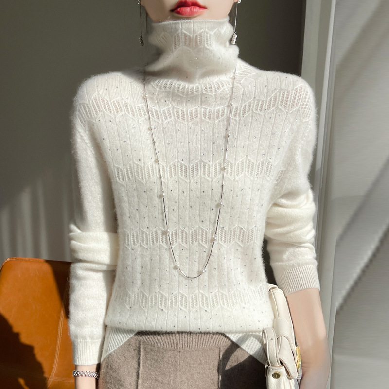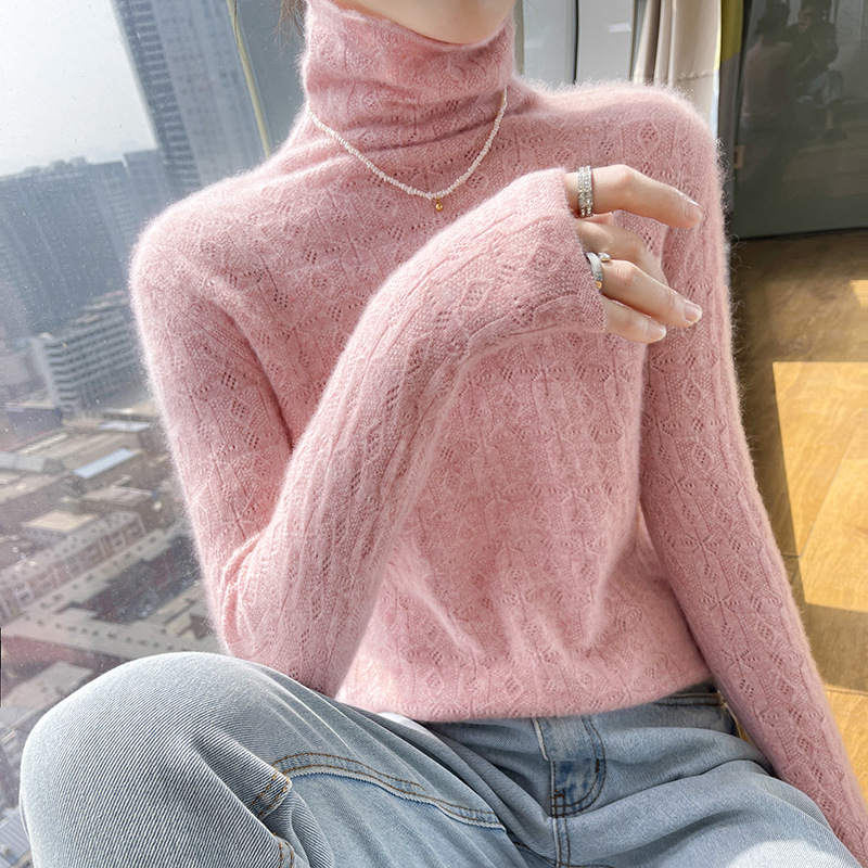 一線の成衣の山の襟のウールのセーターの女性の秋冬の新型の高い襟の透かし彫りのドリルのセーターの女性のウールの底のシャツ