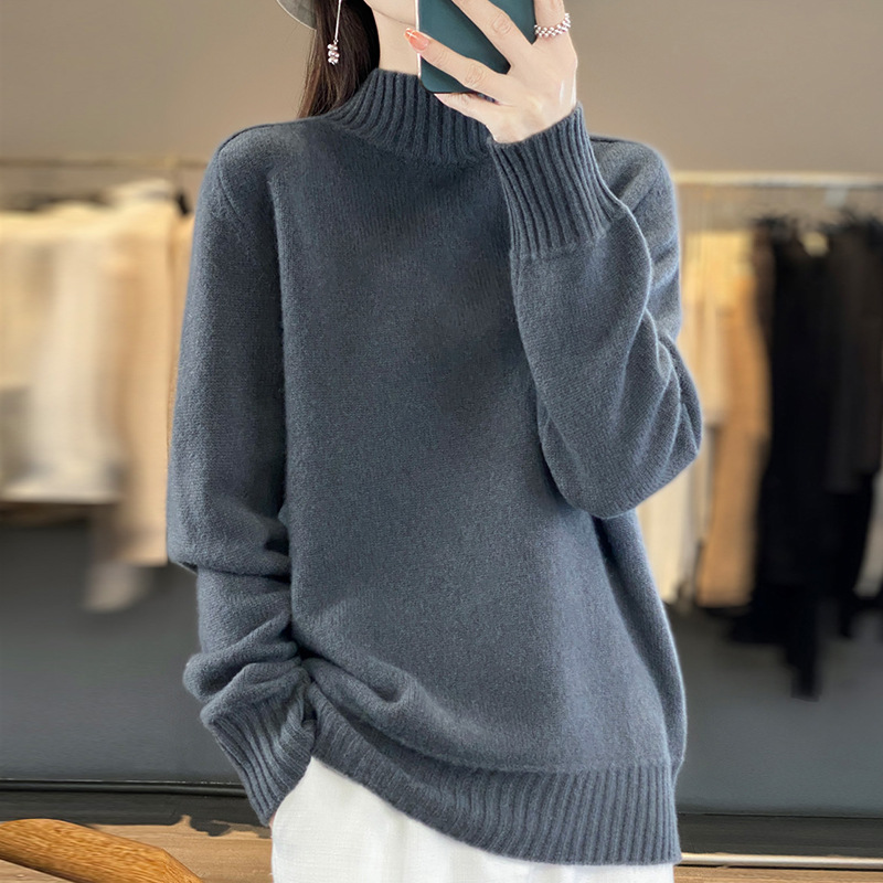 半高襟のセーターの女性は秋冬に厚くてゆったりとした頭のサドルの肩のニットの底のシャツの純色のセーターの2023