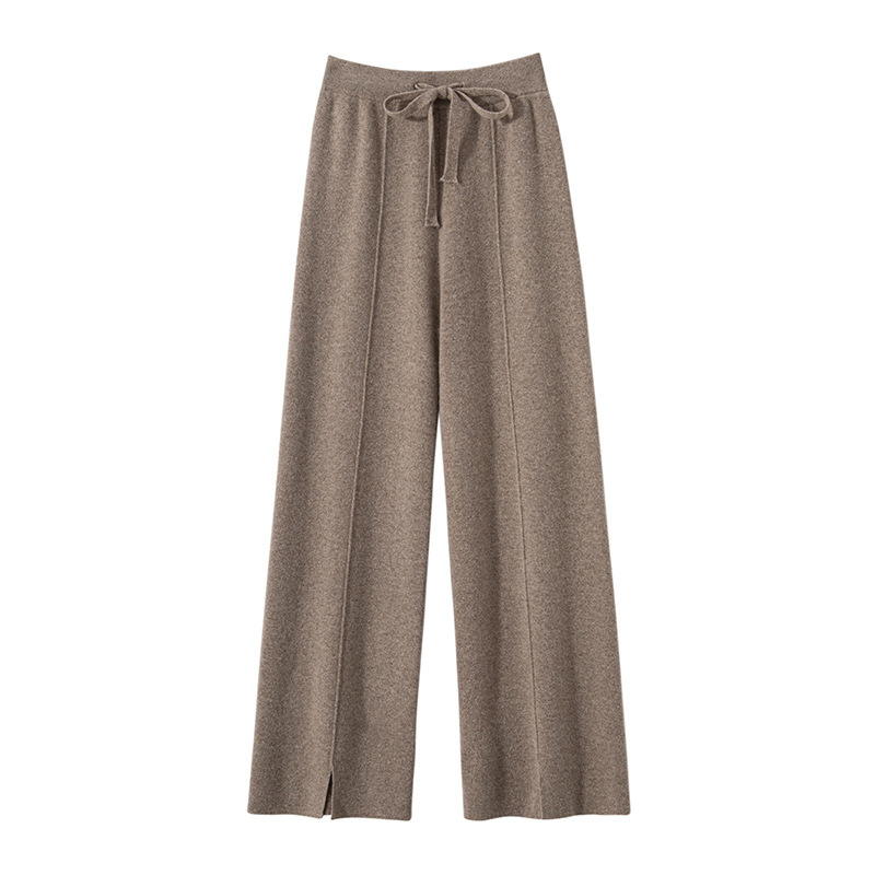 ハイウエストのウールのワイドパンツの女性のカジュアルな垂れ下がったウールの中縫い目の女性のズボンの外はニットのウールのズボンの秋冬を着ます。