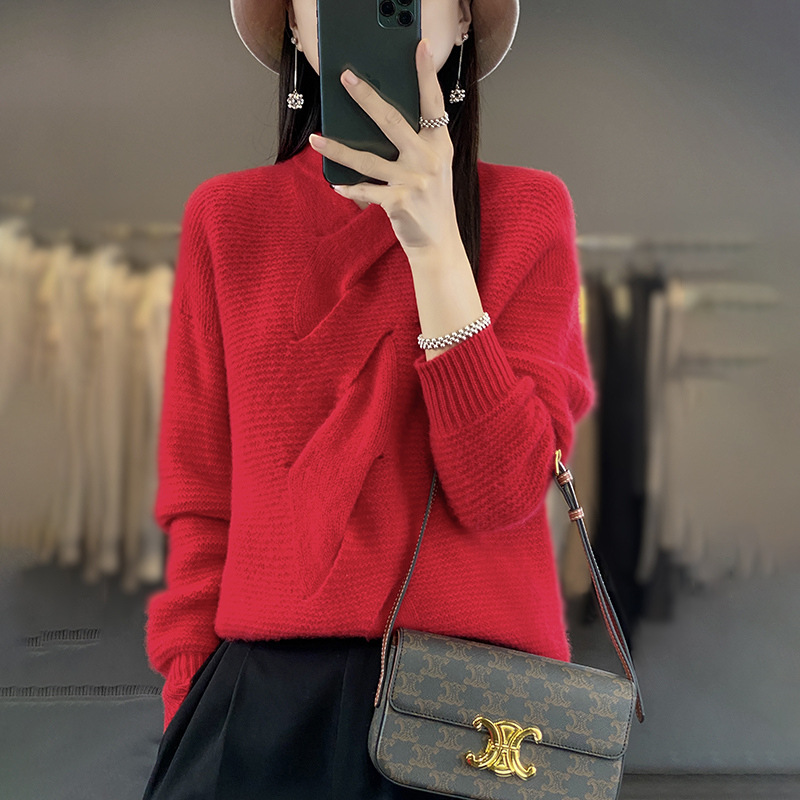 秋冬の新しい双股の厚い半分の高さのフォークの襟のウールのセーターの女性の秋冬の気が大きいです。