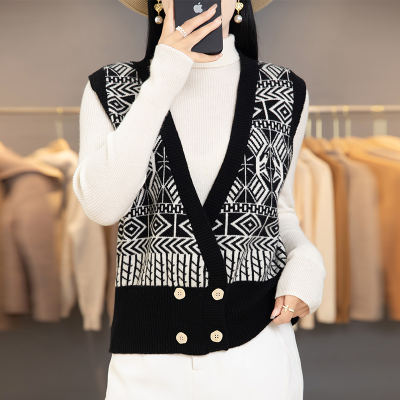 レトロなvネックセーターのベスト女性2023秋冬の新型のゆったりした百合外着の怠惰なウールのカーディガンのベストが厚いです。