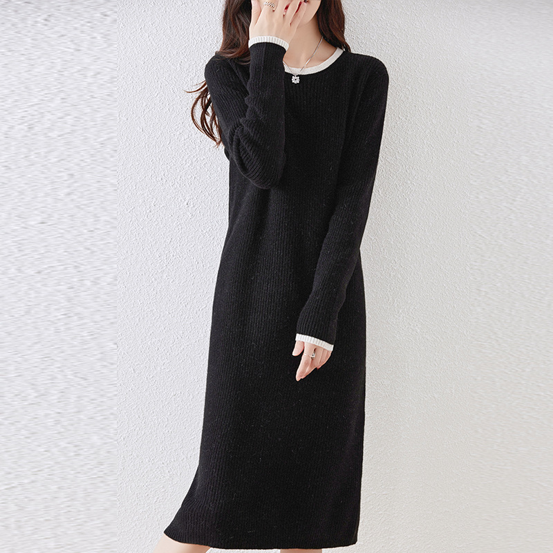 2023新型のフランス式コートの中に中に中の長さの膝を越えたセーターのウールのワンピースの女性の秋冬