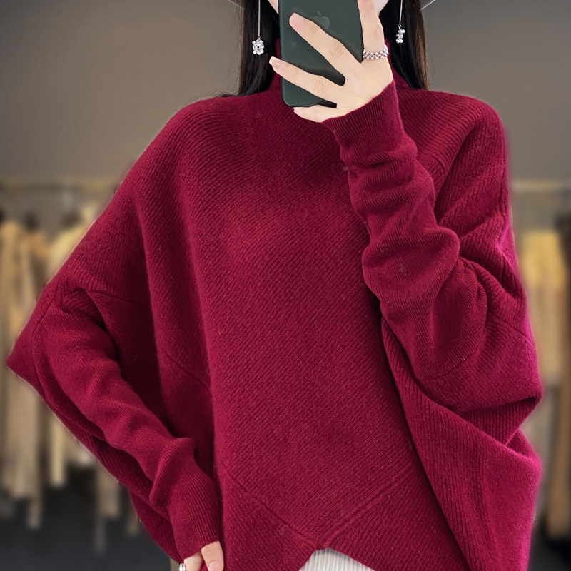 2023秋冬の新型コウモリのセーターの女性の半高襟の気質の長袖の知的な服装はセーターのオーバーの女性の潮に合います。