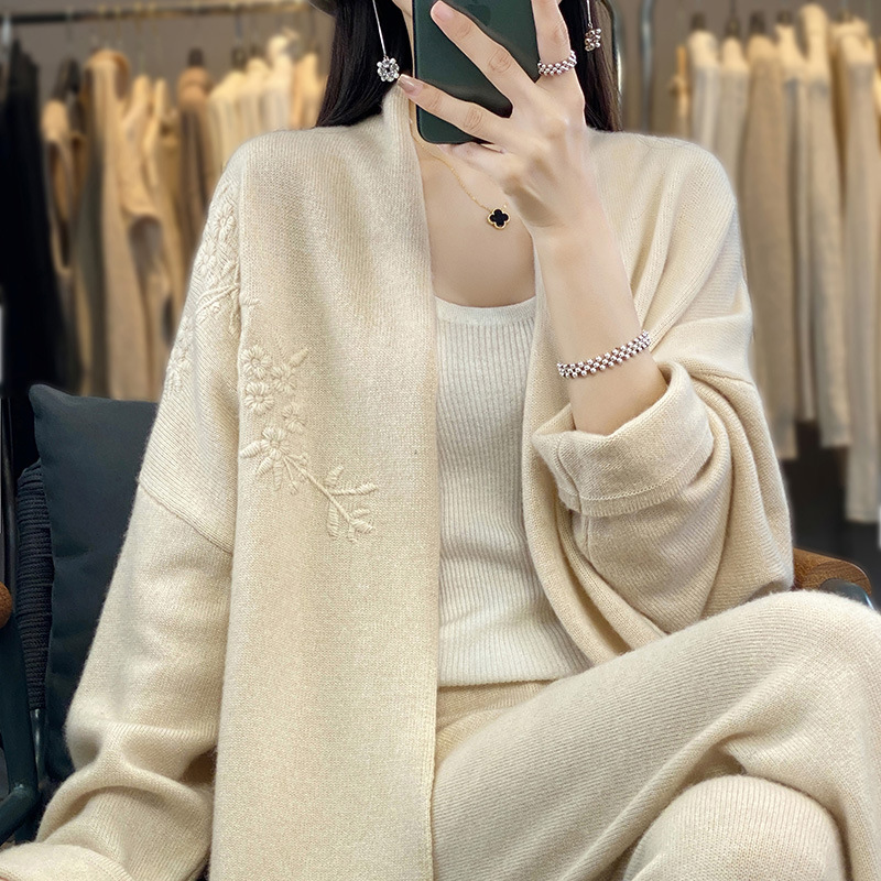 23新型コートのニットカーディガンの女性のゆったりとした年齢のウールのニットのカーディガン