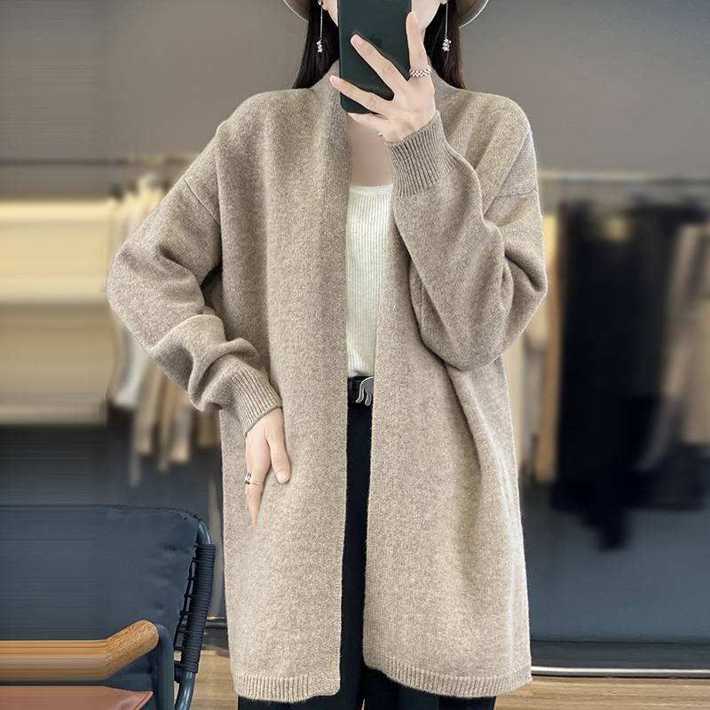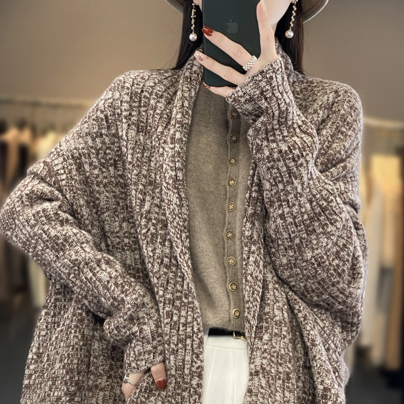 2023年秋冬のミディアムウールのニットの大きいカーディガンの女性は韓国版のゆったりした怠惰なセーターのコートを着ます。