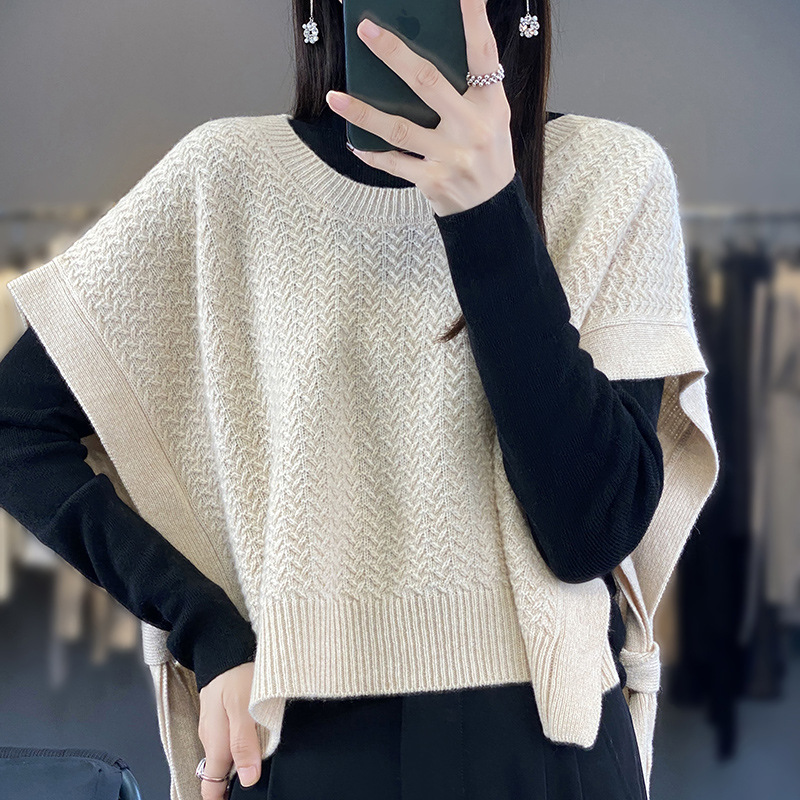 国境を越えた女装2023秋冬の新型欧米insニットの短いマントの縦のウールの小さいカンカンの肩の組み合わせ