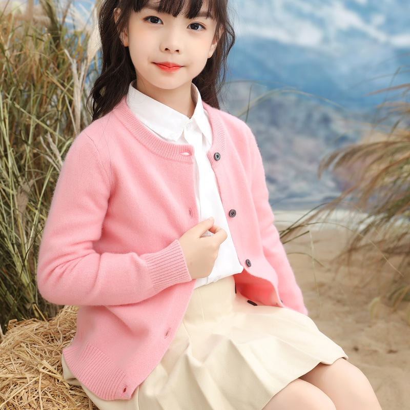 23春と秋の新型子供コートの女の子のニットセーターの男の子のカーディガンの丸首は柔らかいです。