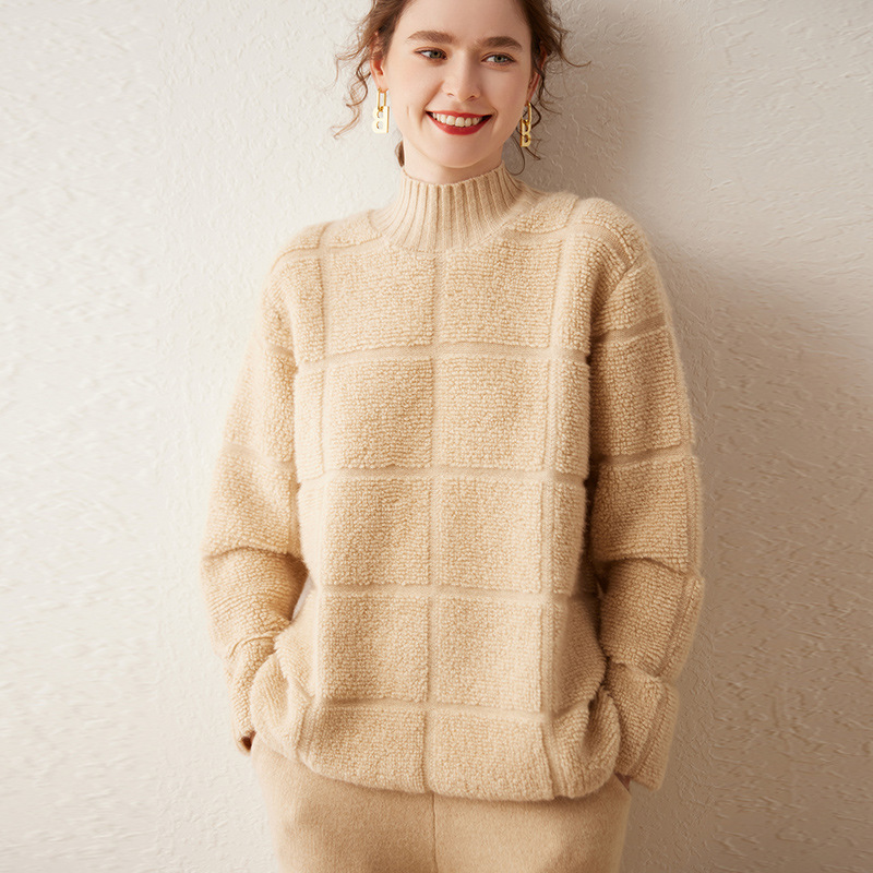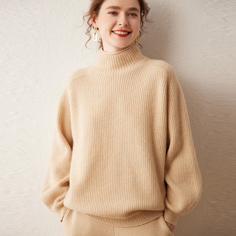 女性の秋冬の新型の半高襟の長袖のタオルの巻きの工芸品のカジュアルな百合のゆったりしているカシミヤのニットのセーター