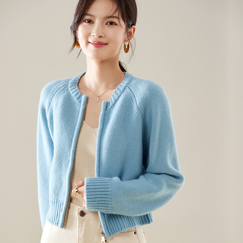 短いジッパーセーターのカーディガンさん2023秋の季節の新型韓国版ゆるい小柄なニットコート