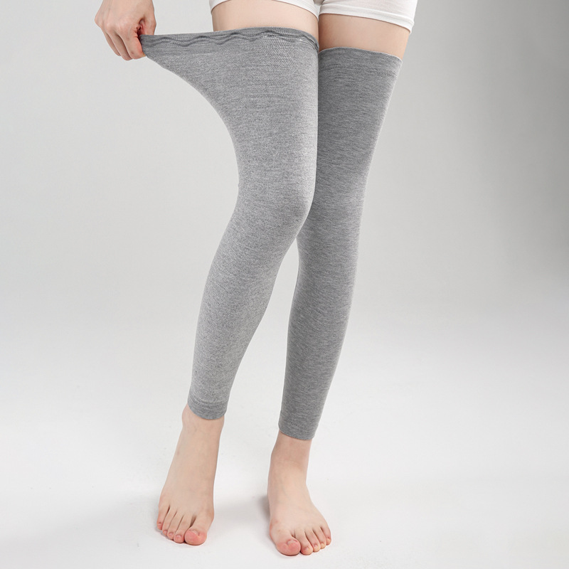 春夏の薄い足の男性の女性のエアコンの部屋の保温の膝の蓋の関節の運動の中で純色の莫代の長い足の保護を着ます。