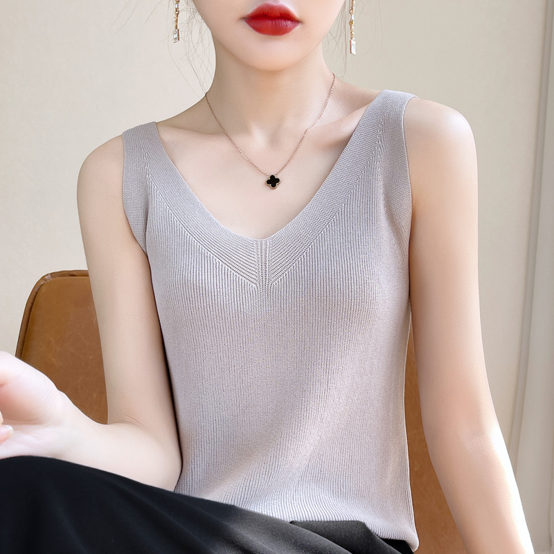 卸売り曲珠ストラップベストの女性は夏のノースリーブニットを着ています。