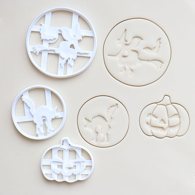 新品アマゾンプラスチックハロウィーン印章磨具ホワイトエンボス工具かぼちゃ魔女黒猫印章金型
