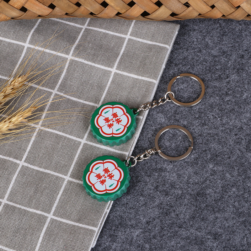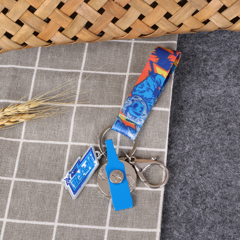 源メーカーデザイン創意ビール瓶アクセサリーキーホルダー青い瓶金属ストラップ雪花キーホルダー