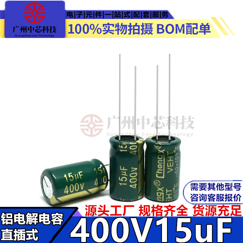 アルミ電解コンデンサ400v 15uf 10*17mm緑金高周波低抵抗インラインコンデンサ電源コンデンサ8*16mm