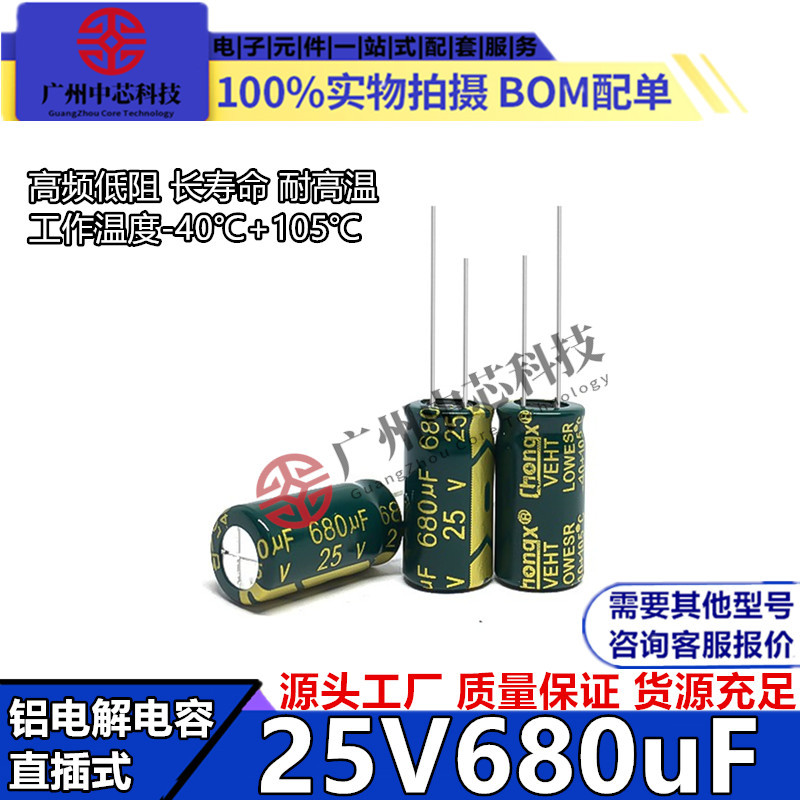 25v680ufメーカー直供高周波低抵抗長寿命電解コンデンサ680uf25v 10*16 8*16mm