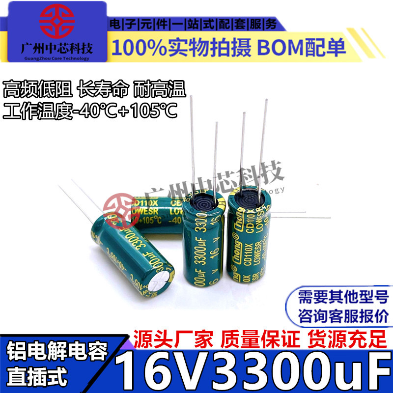 メーカー直供16v 3300uf 10*24mm高周波低抵抗長寿命アルミ電解コンデンサ3300uf16v