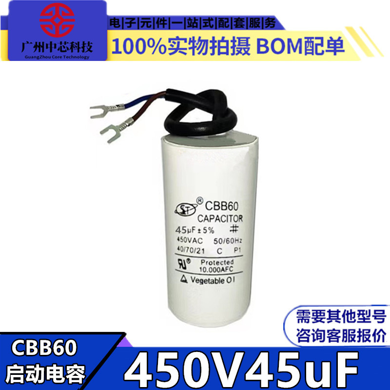 Cbb60起動コンデンサ薄膜コンデンサ450v45ufシースリード単相モータ交流コンデンサ450vac