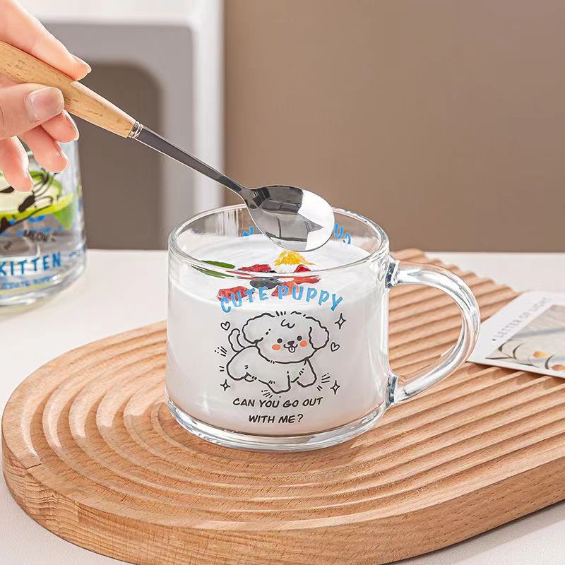 新鮮な漫画インガラスミルク朝食カップ蓋付きスプーンストローカップ大容量寮ホーム女性ギフト