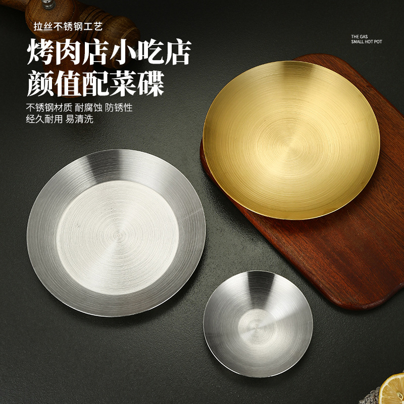業務用ステンレス円盤牛肉鍋店専用皿韓国式浅皿皿皿皿フライパン円形トレー
