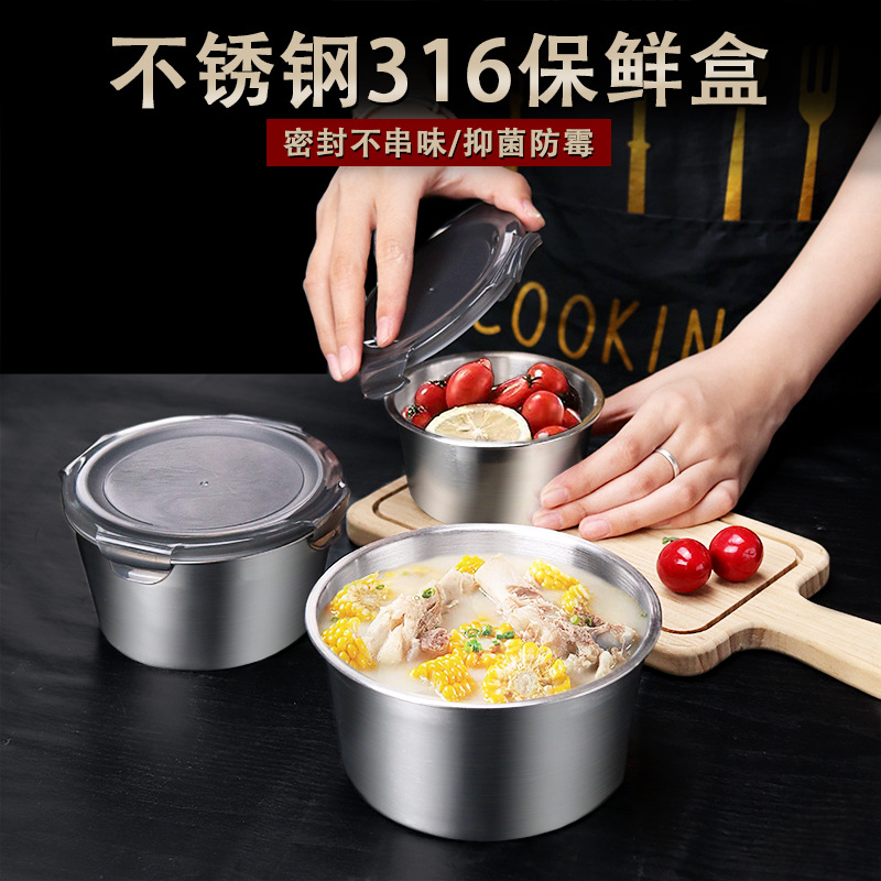 316ステンレス円形保存箱食品級大容量弁当箱弁当箱家庭用蓋付き野菜箱密封碗