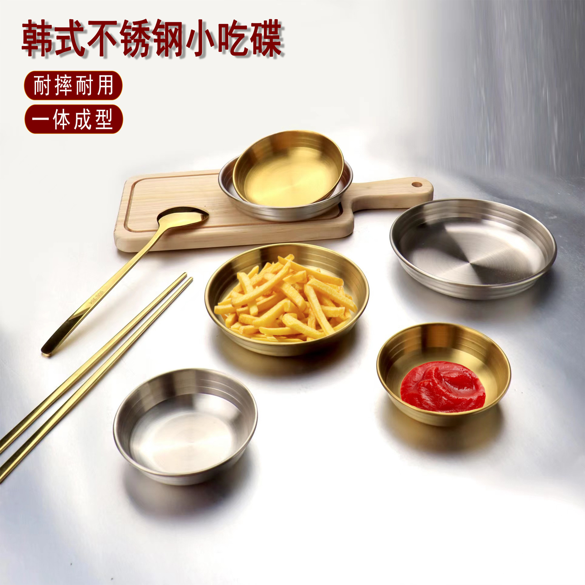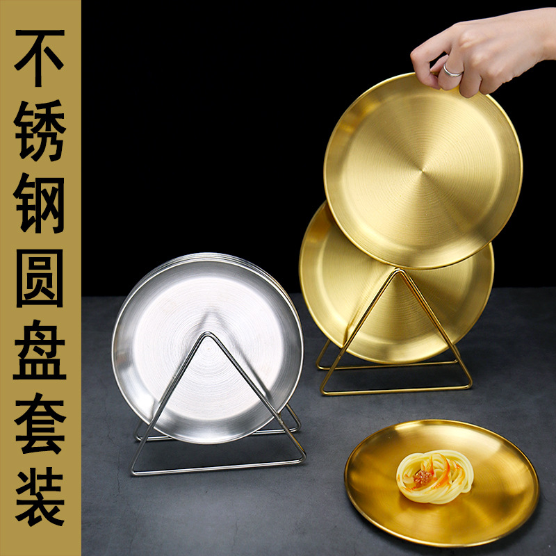 ステンレスの皿韓国式金色の円盤カフェの浅い皿はケーキ皿の果物皿の骨皿の平らな皿を厚くします。