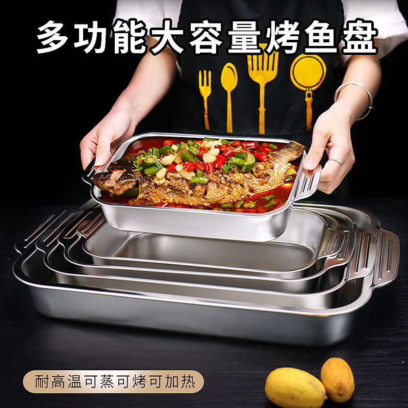 ステンレス海鮮料理皿麻辣小ロブスター皿フライドチキン大カレー皿両耳平底乾燥鍋韓国式焼き皿パスタ